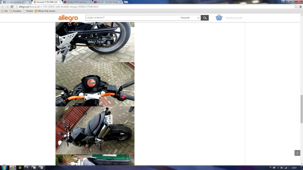 Z ciekawości przeglądałem sobie oferty na allegro z motocyklami i przypadkiem natknąłem się na to Kawasaki Z750.
