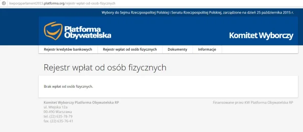 Czemu nie widać listy wpłat do komitetów partii?