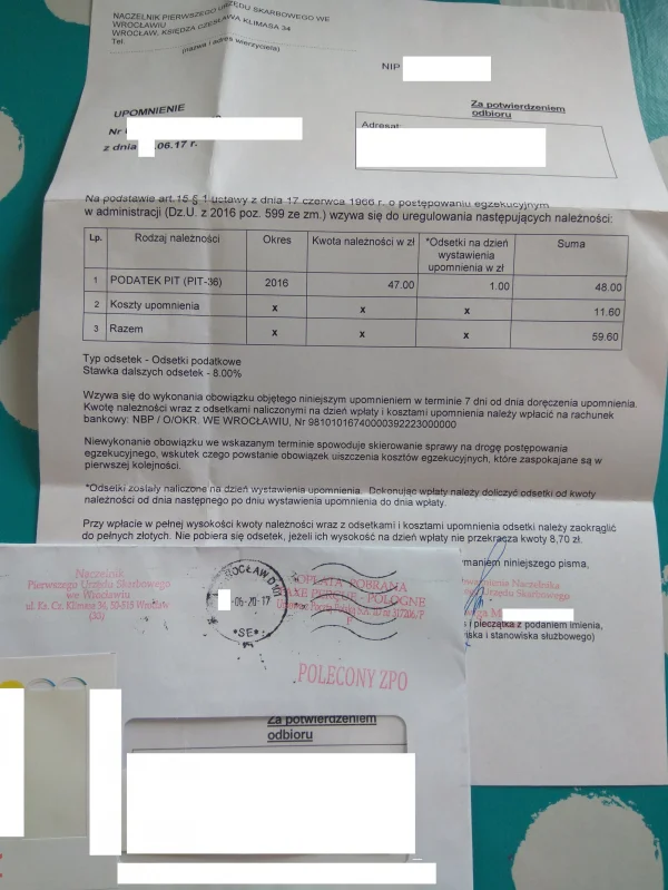 * lipiec - dostaję płatne upomnienie i wezwanie do uregulowania zaległości z odsetkami, bo urząd prawie 2 miesiące po złożeniu korekty wysłał mi zwrot w wysokości wynikającej z oryginalnego PITa, zamiast takiej, jak w korekcie