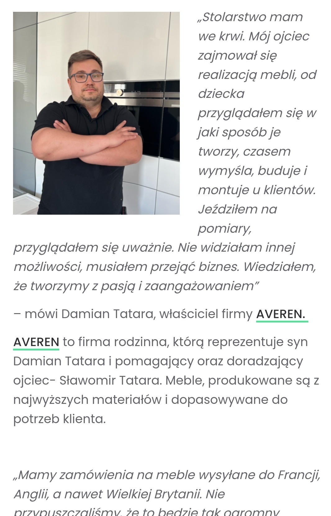 Pan Damian zakłada spółki i produkuje meble albo bardzo by chciał zabiera zaliczki i znika ja zostałem oszukany na 2500 Pani z warszawy na 10000 i jedna jeszcze 5400 Pan Damian Tatar nip 5252967081 to bardzo dobry fachowiec przyjedzie umowę podpisze zaliczkę zabierze i człowiek czeka na montaż a pan Damian Tatar nip7722409216 jest już u następnego klienta gdzie robi to samo czyli umowa zaliczka i znika telefonu nie odbiera zmienia nazwę firmy ogłasza się na Facebook olx i innych. Brosze o wykopanie by ładnie farmę było widać na Google