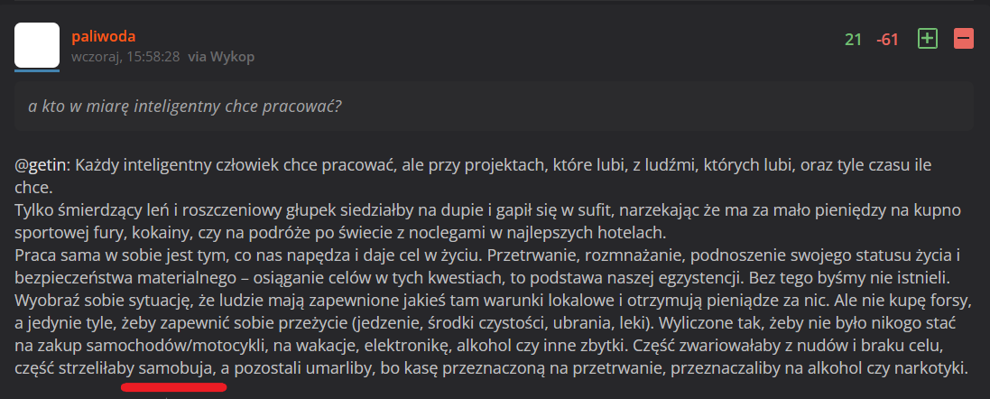 Mocne słowa jak na "samobuja".