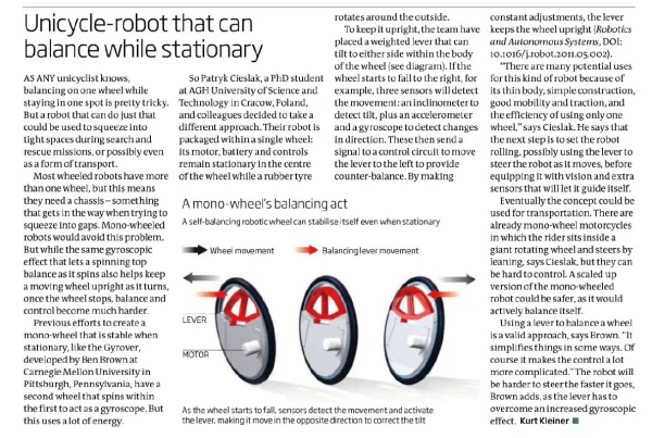 Jednokołowy robot potrafiący balansować stojąc w miejscu. New Scientist o sukcesie studentów AGH. w.....2 konto usunięte z wykop.pl dodany: 13.06.2011, 09:01:07 # technologia# nowetechnologie# patryk# cieslak# robot# monocykl# new# scientist 0 Otrzymuj powiadomienia o nowych komentarzach Obserwuj dyskusję