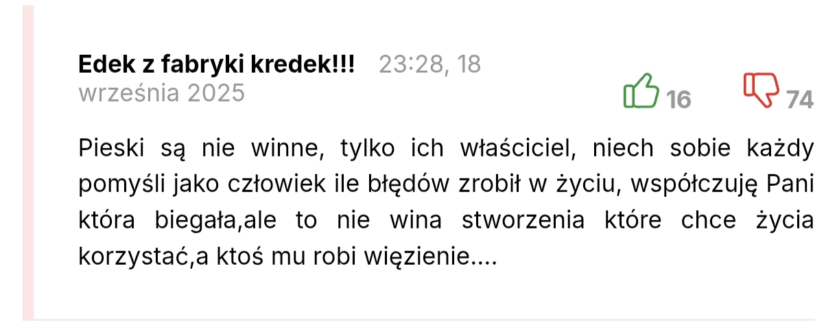 Jak kundel jest na spacerze to ty tracisz wszystkie prawa człowieka