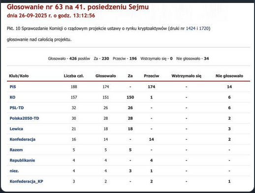 Piątkowe głosowanie w Sejmie to czarny dzień dla polskiej branży kryptowalutowej. 230 posłów właśnie zdecydowało - ustawa o kryptoaktywach przechodzi dalej! Ustawa ta może zadać śmiertelny cios rodzimym firmom działającym w sektorze kryptoaktywów.