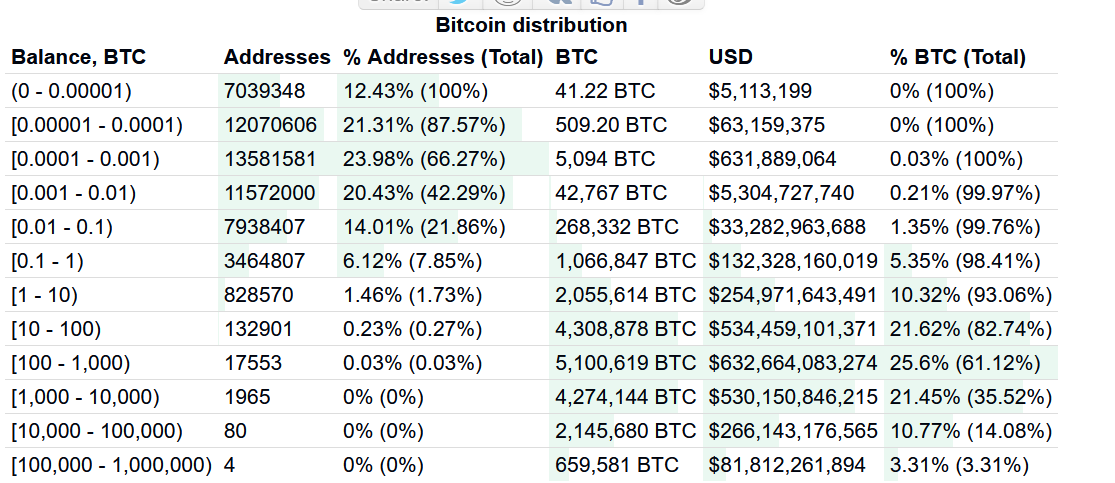 93.07% bitcoinów znajduje się w 1.69% portfelach.