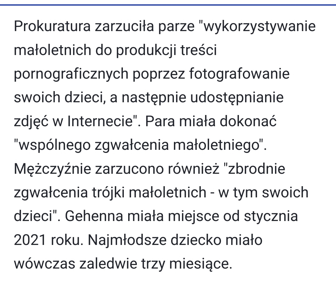Sebastian Jaworski i Martyna Szamrowicz zostali uznani za winnych wykorzystywania seksualnego swoich dzieci do tworzenia treści pornograficznych. Sąd nakazał udostępnić ich wizerunki i dane w publicznej części rejestru dla przestępców seksualnych. Para miała dokonać "wspólnego zgwałcenia małoletnieg