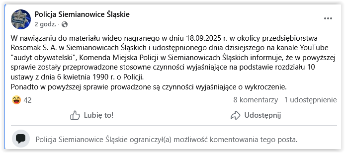 Czy policjanci z Siemianowic Śląskich byli odurzeni? Odwiedzam okolice zakładu Rosomak, gdzie zarządcy postanowili łamać prawa obywateli przez ograniczanie im swobód obywatelskich. Piękny mural na murach zakładu ale i fatalny pozaprawny zakaz fotografowania. Wezwana policja zamiast zająć się bezpraw