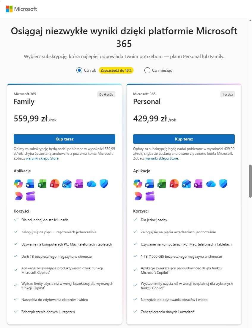 Miraski, co się w tym roku odwaliło z ceną rocznej subskrypcji Personal? Od kilku lat kupowałem sobie elegancko QQ2-00012 dla 1TB+Office za 170-180zł a teraz 300 chcą (╯°□°)╯︵ ┻━┻