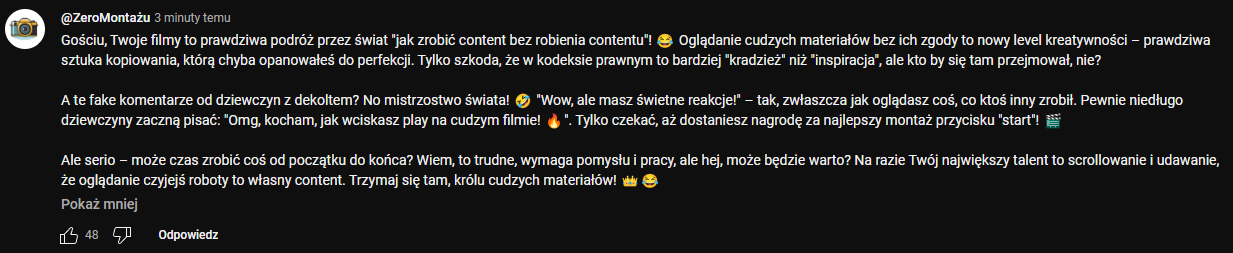 Ale po co wy oglądacie tego typa? Już za samą facjatę bym typa banował a wy mu robicie kliki i na was zarabia