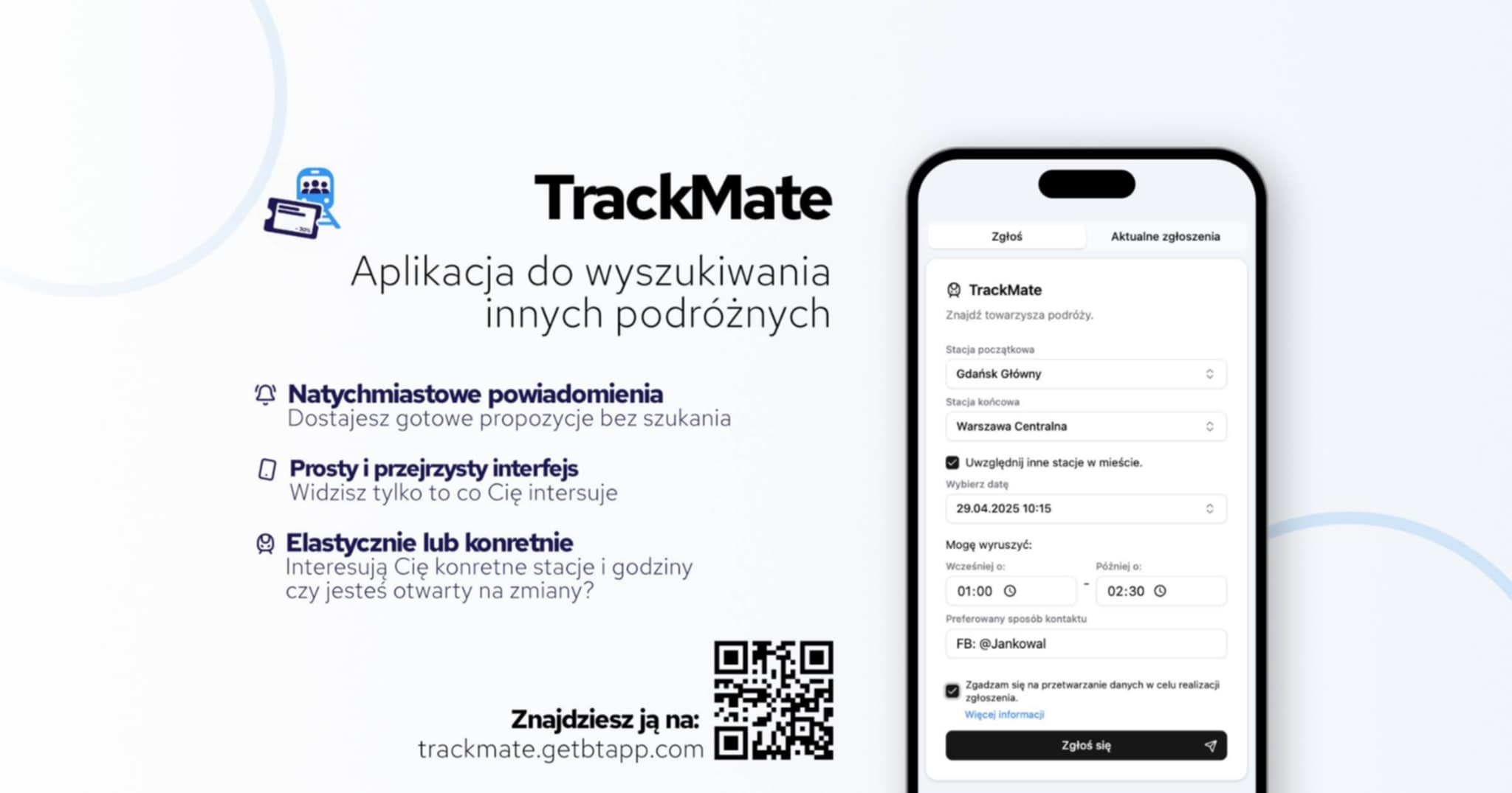 Podróżujesz pociągami i nie chcesz jechać sam? Z aplikacją TrackMate znajdziesz towarzyszy podróży, z którymi łatwiej, przyjemniej a może nawet taniej ;) dotrzesz do celu.