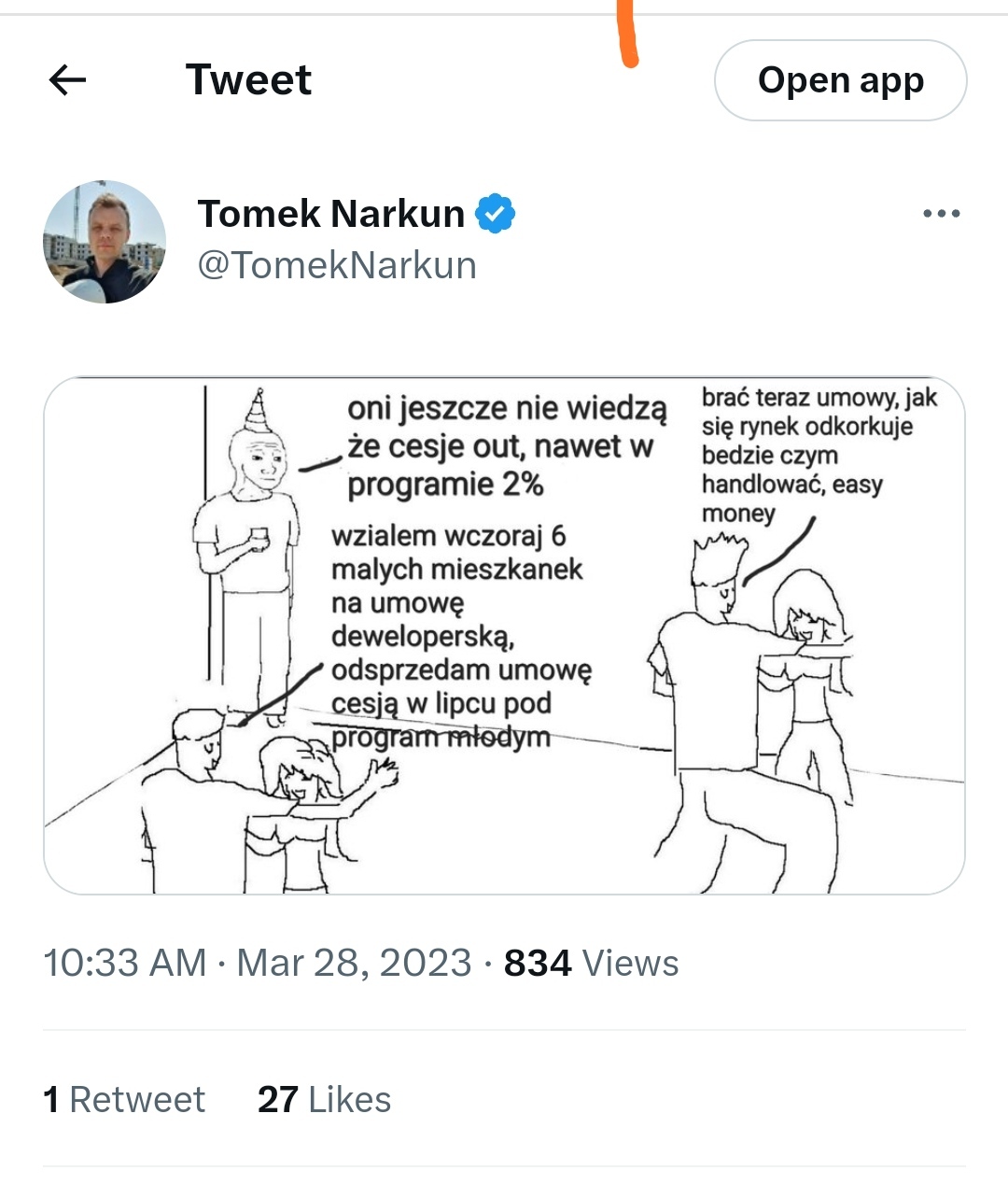 Inwestycja którą obserwuję od stycznia wyprzedaje się i deweloper podnosi ceny. Zapytałem o możliwość rezerwacji mieszkania pod dopłatę i dostałem odpowiedź że taka możliwość jest ale wymagana jest wpłata 5% wartości mieszkania (30k) i umowa którą na to spiszemy to nie umowa deweloperska (żeby nie stracić możliwości dopłat) tylko jakaś zwykła. W przypadku odmowy kredytu od 3 banków (kredytu a nie dopłaty to ważne)