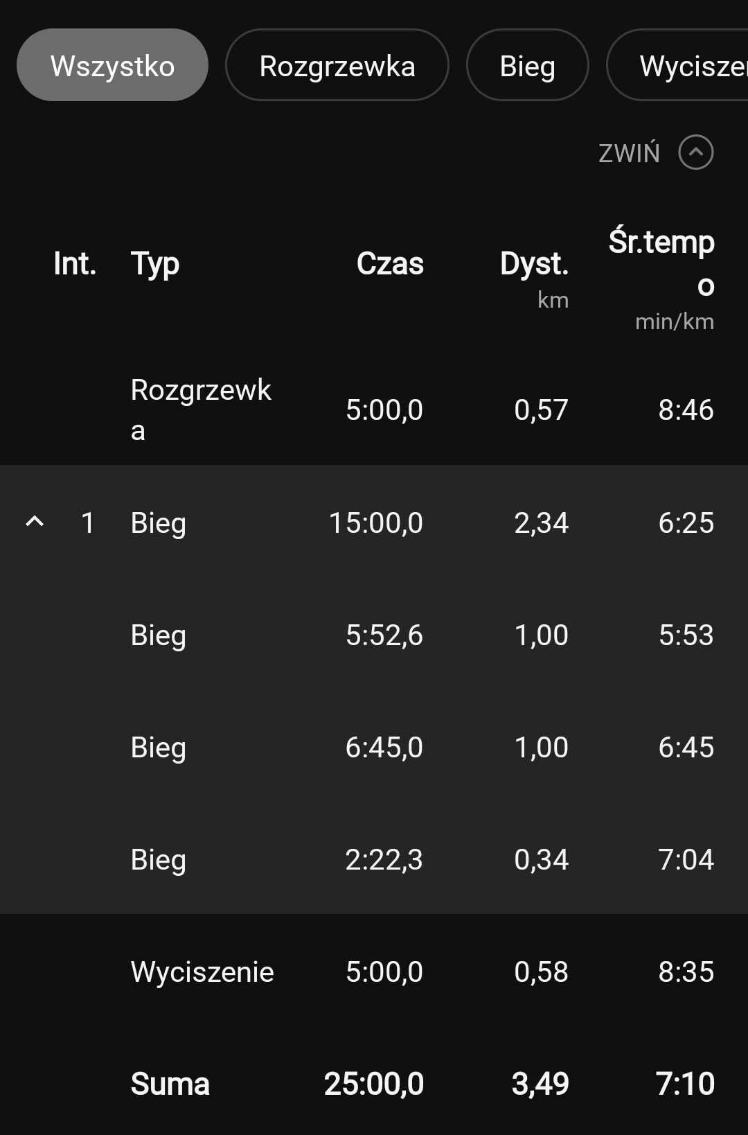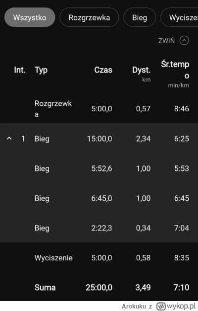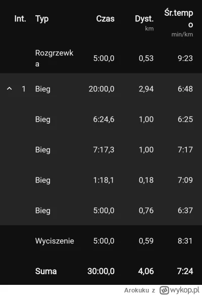 Tydzien 6/11 Dzis krótszy czas treningu wiec postanowiłem go przebiec szybciej niż zwykle bo trzeba gonić kolegów z tagu. Chciałem biec tempem okolo 6,00 no i finalnie po 2 km spuchłem XD Myslalem ze nie dam juz rady dokończyć treningu ale jakoś sie doczłapałem. Chyba jestem zbyt ulany na wyższe tempo no ale zobaczymy za jakiś czas.