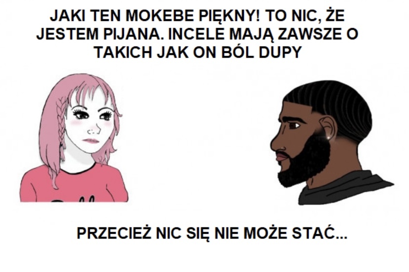 Ale jak to hebanowy książę nie zachowuje się jak Europejczyk, przecież powiedziałam NIE i tym sposobem nie ma prawa mnie dotknąć. Dziwne, na inceli działało. #p0lka #przegryw #logikarozowychpaskow