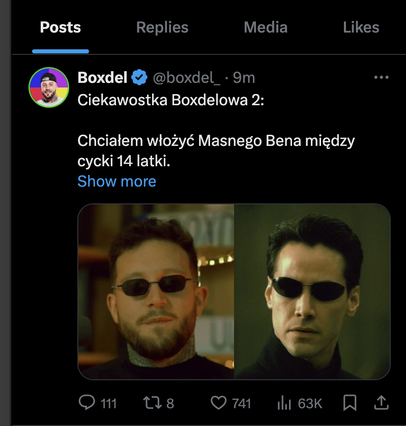 #primemma Boxdel to masakra. Przy Nim nie powinno sie ani slowa powiedziec, Bo wszystko wypapla. Dlugi jezor, krotki umysł. To taki zomek, ze zorganizowalby napad na bank, a pozniej pognal na komende i sprzrdal siebie oraz reszte wspolnikow.