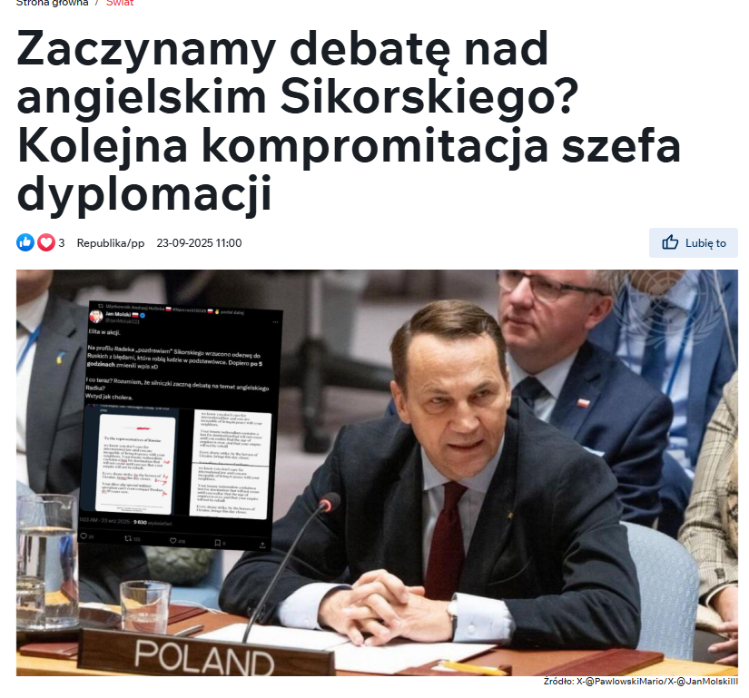 TV Republika powołuje się na wpis trolla Jana Molskiego, który powołuje się na niezweryfikowane konto ministra spraw zagranicznych Sikorskiego, i rozpoczyna się dyskusja nad notką, która nigdy nie istniała