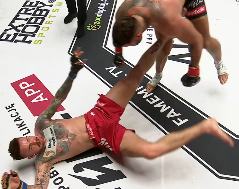 I co? Podłączył wędkarza, ale przez to, że dał sobie obijać nogę przez większość walki stracił równowagę przy odepchnięciu.