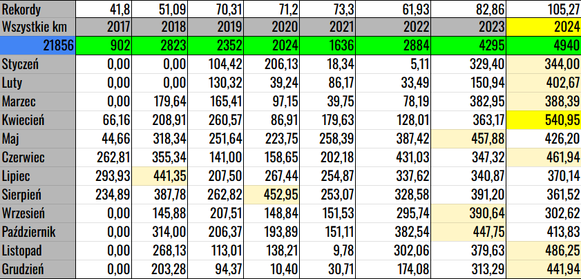Jednak nie udało się mi zrobić 5 000 km, ale cóż spokojnie w następnym się na pewno uda! Ale rekord i tak pobity!