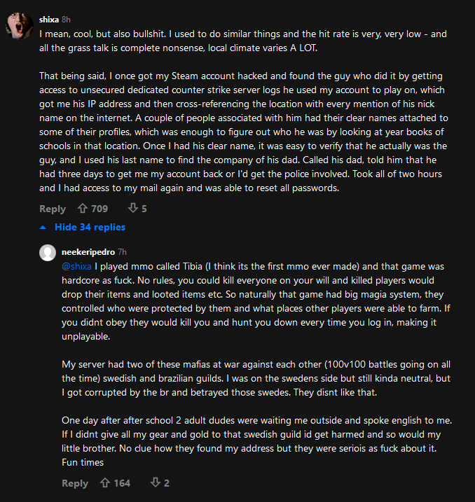 @Phallusimpudicus: haha, dobre. Ja mam gdzieś screena jak loguje w 2011 roku po 2 latach na rl tibie, a tam list, że jak kasy nie będzie do iluś tam dni to wpadają do kafejki po jakiegoś typa i go montują xD ciekawe czy chłop wyłapał w łeb, bo źle ktoś parcela zaadresował xD