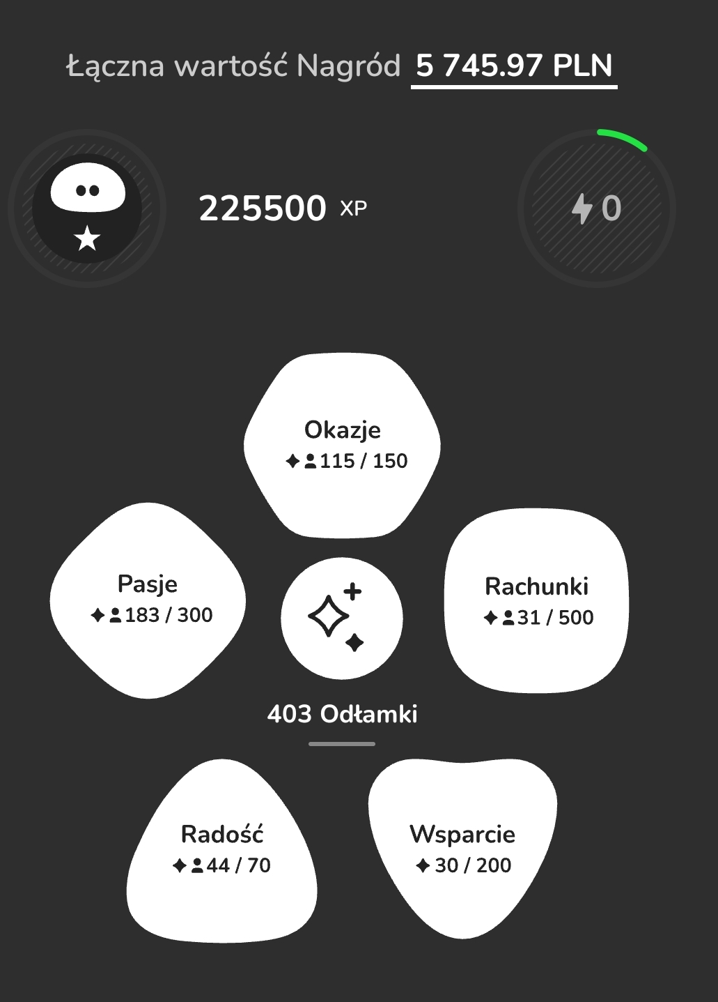 Jeśli jesteś w stanie za większość tych wydatków płacić kartą, to za każde wydane 14 zł kartą Zen otrzymujesz 1 odłamek. W miesiąc otrzymasz ok. 464 odłamków. Daje to co najmniej 6 kamieni radości, których wartość może wynosić o 2e do 7e. Dałoby to ok. 100 zł oszczędności w miesiącu. Dodatkowo w Zen możesz wykonywać misje, za które otrzymasz kolejne kamienie i boostery pozwalające wylosować kamienie o