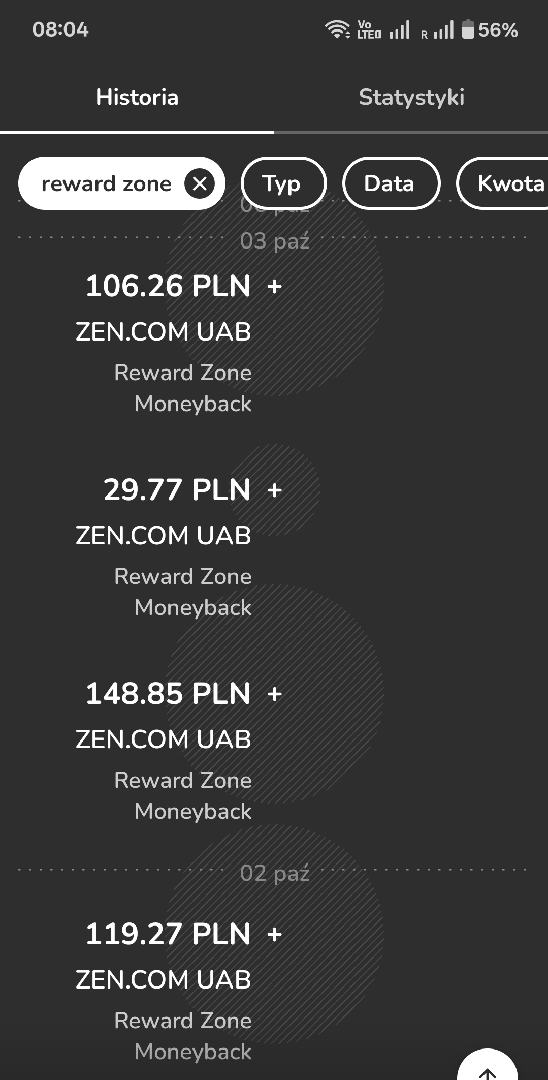 @Wypokowicz93 dokładnie tak. W Zen za każdą płatność ich kartą otrzymujesz tzw. odłamki, których tworzysz sobie kamienie, losujesz ich wartość i używasz na transakcji, aby otrzymać zwrot.