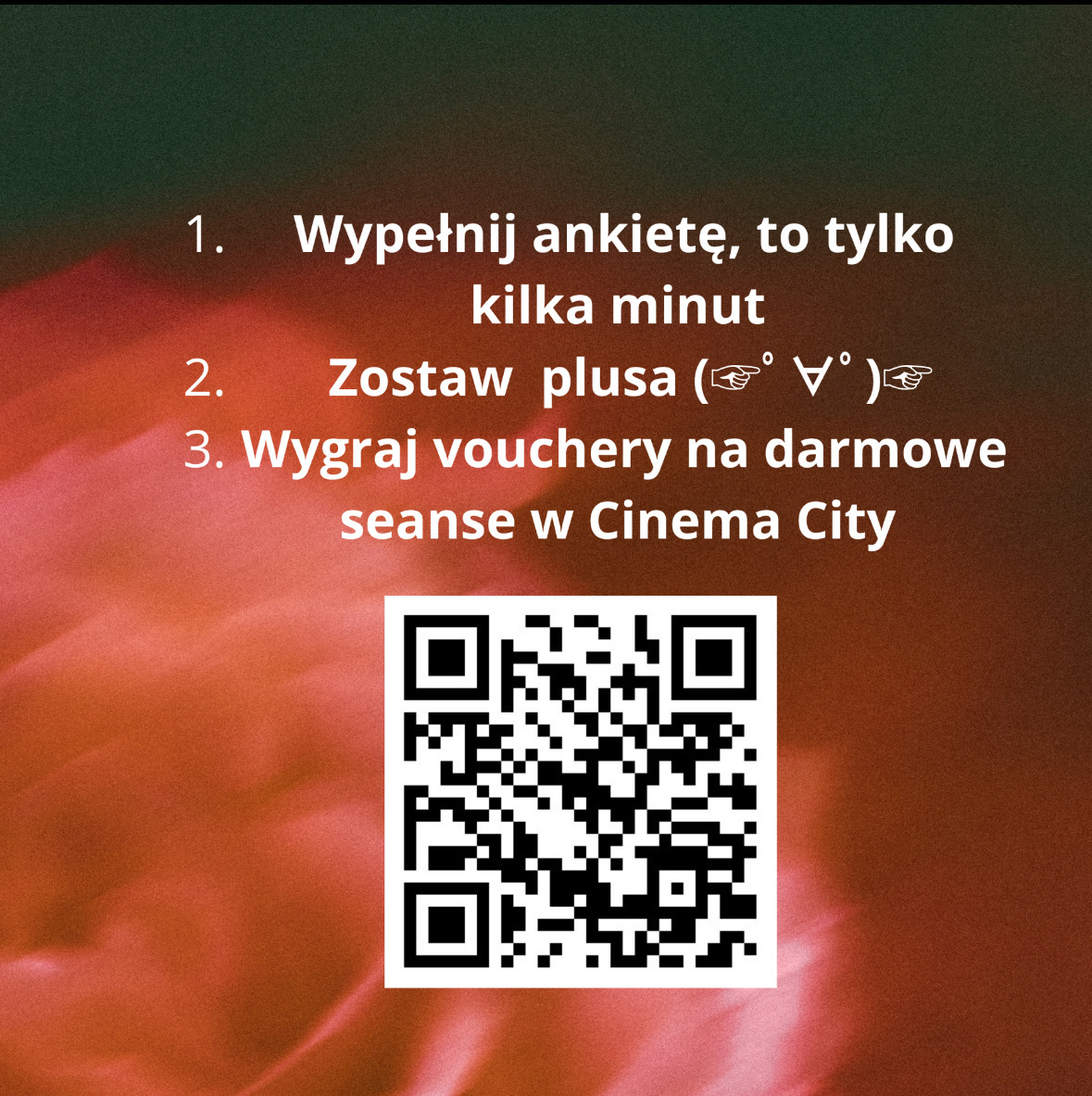 Przypominam o trwającym #rozdajo na darmowe seanse w Cinema City za wypełnienie ankietki do pracy magisterskiej i zostawienie plusa ( ͡°͜ʖ͡°). Mam już prawie całą pulę badanych. Brakuje mi jedynie odpowiedzi osób z grupy wiekowej 27-30t i kilku odpowiedzi panów. Mam 5 voucherów i na ten moment jedynie 19 chętnych ( ͡°͜ʖ͡°)