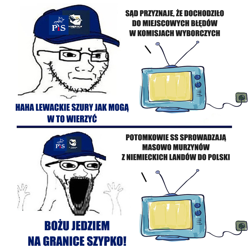 @IksdeHeheh: Taka prawda. Tzw. prawica, która koło ideowej prawicy nawet nie stała, całą swoją działalność opiera na strachu, fałszu i niczym więcej, ale niestety aktualnie tak wygląda współczesna polityka, gdzie jakieś fakty nie mają znaczenia, byle puścić głośny nagłówek by brainlety przyjęły jako prawdę objawioną bez jakiejkolwiek autorefleksji.