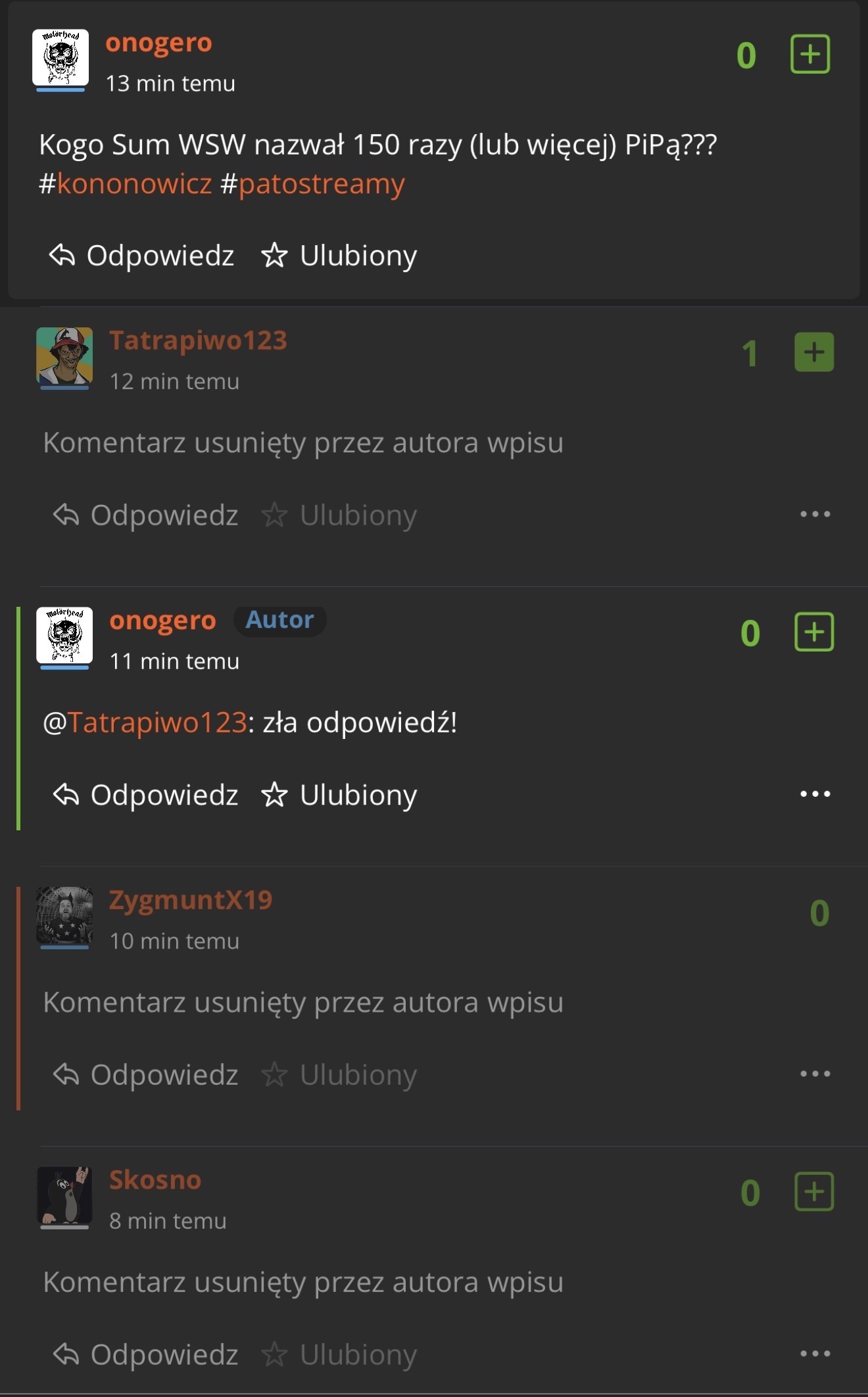 #kononowicz czy moderacja, tego portalu !? To jakieś nie dorobione, malepety ? Które, bronią człowieka Sławomira En., którego, wykorzystywał umysłowo chorego, człowieka, w celach, zarobkowych ? Więc, wykop ! Jest współwinny ! 😂