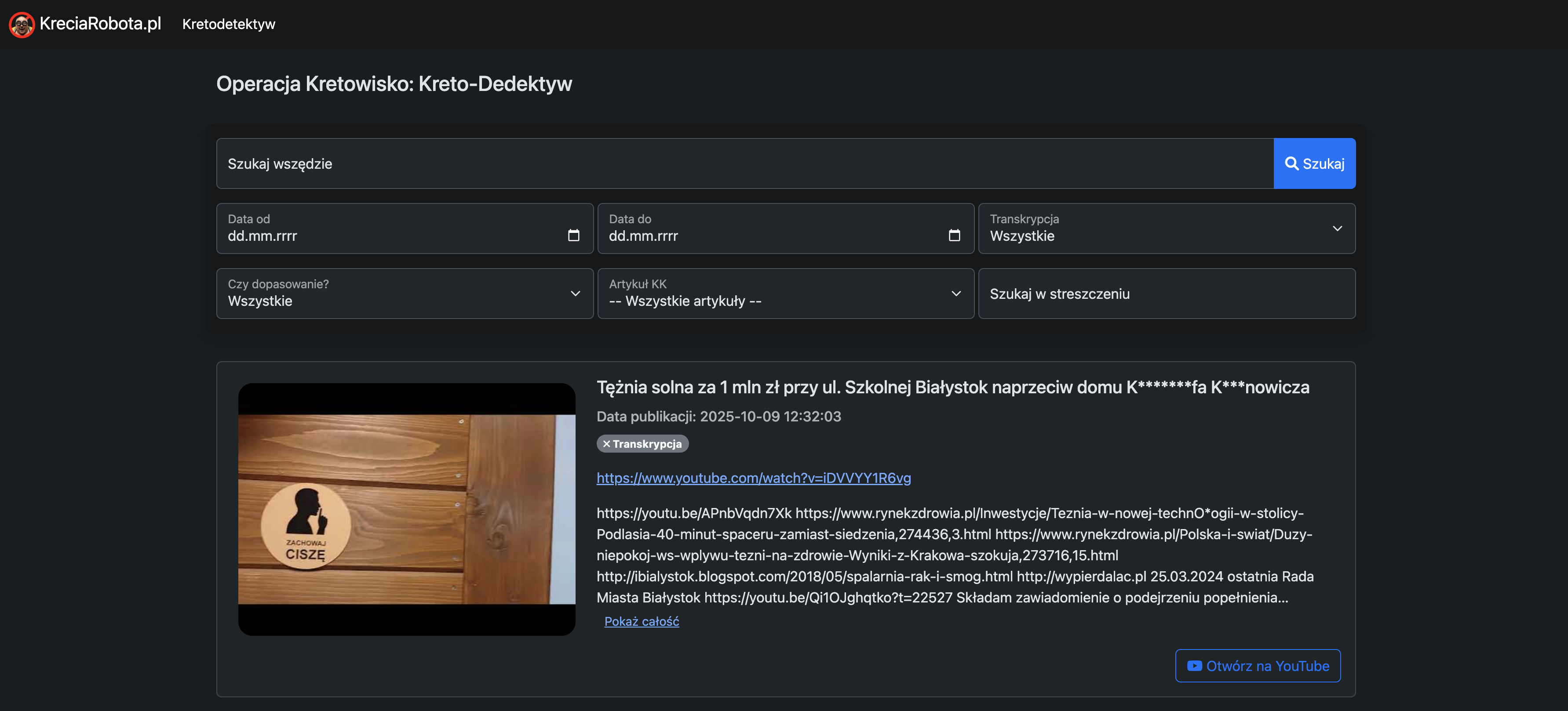 Hej wszystkim, jeżeli ktoś chce pomóc w udowodnieniu, że Rafał Kosno zastraszał Kononowicza i odradzał mu DPS, szpital etc. to zapraszam do korzystania z apki Kretodetektyw na Kreciarobota.pl. Pamietajmy, że Rafał Kosno też jest w precederze umoczony! Kretodetektyw #kononowicz #us17 #patologia #szkolna17 #polska #pomoc #patostreamy