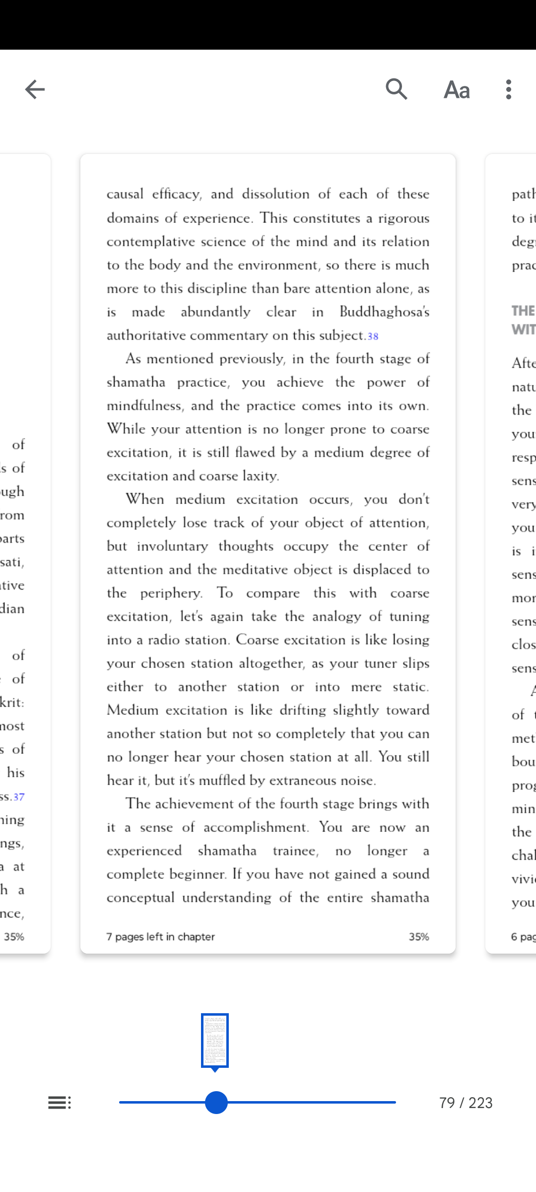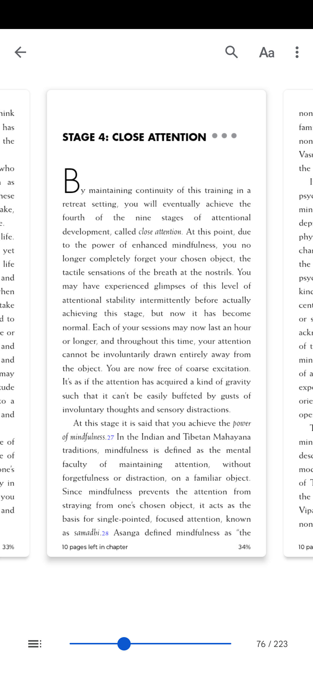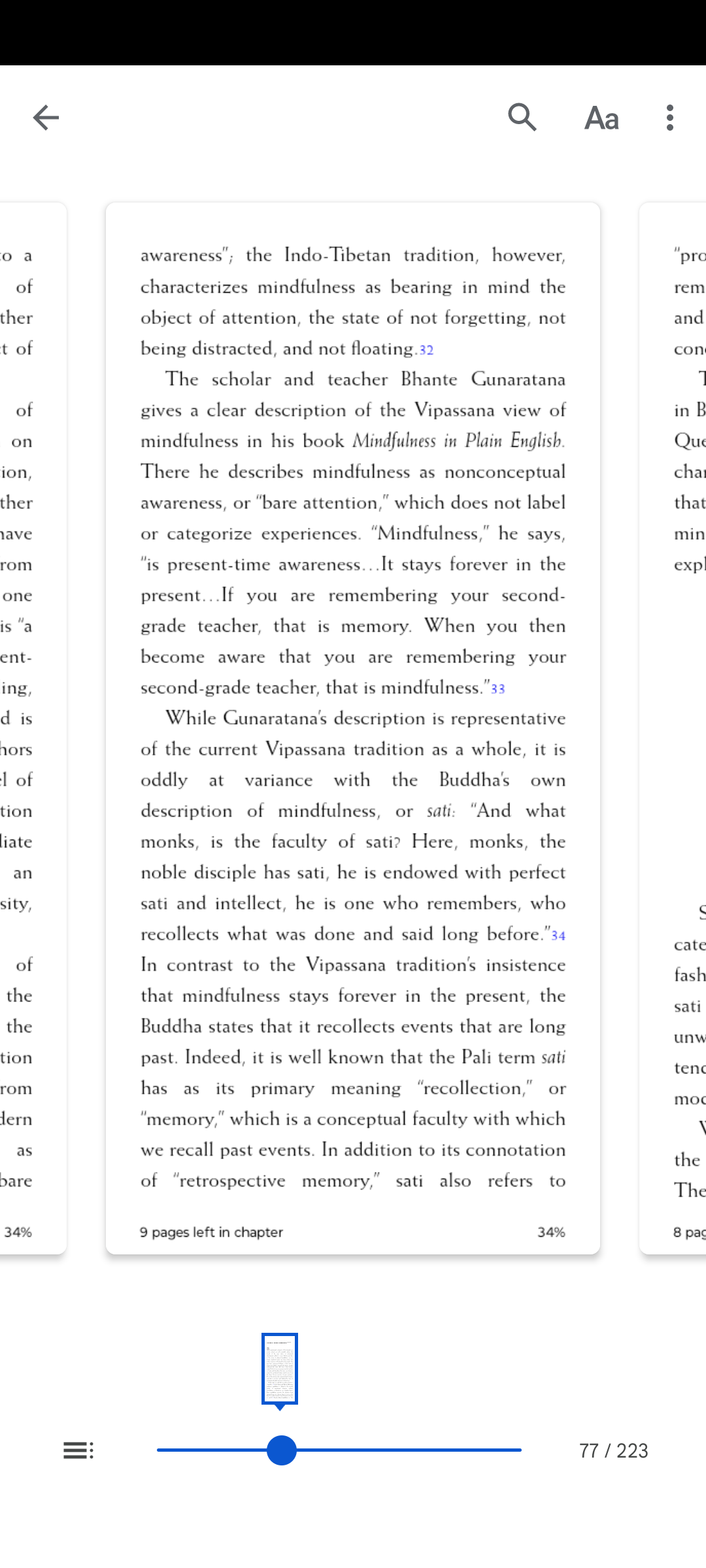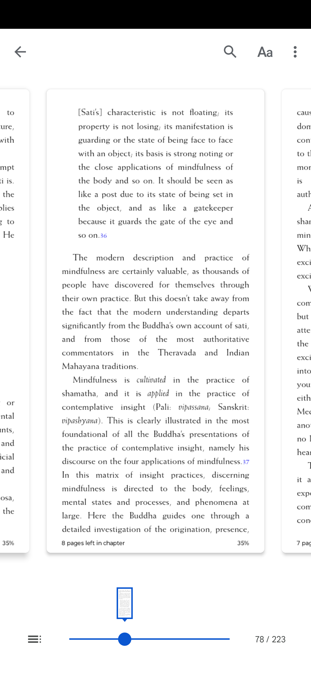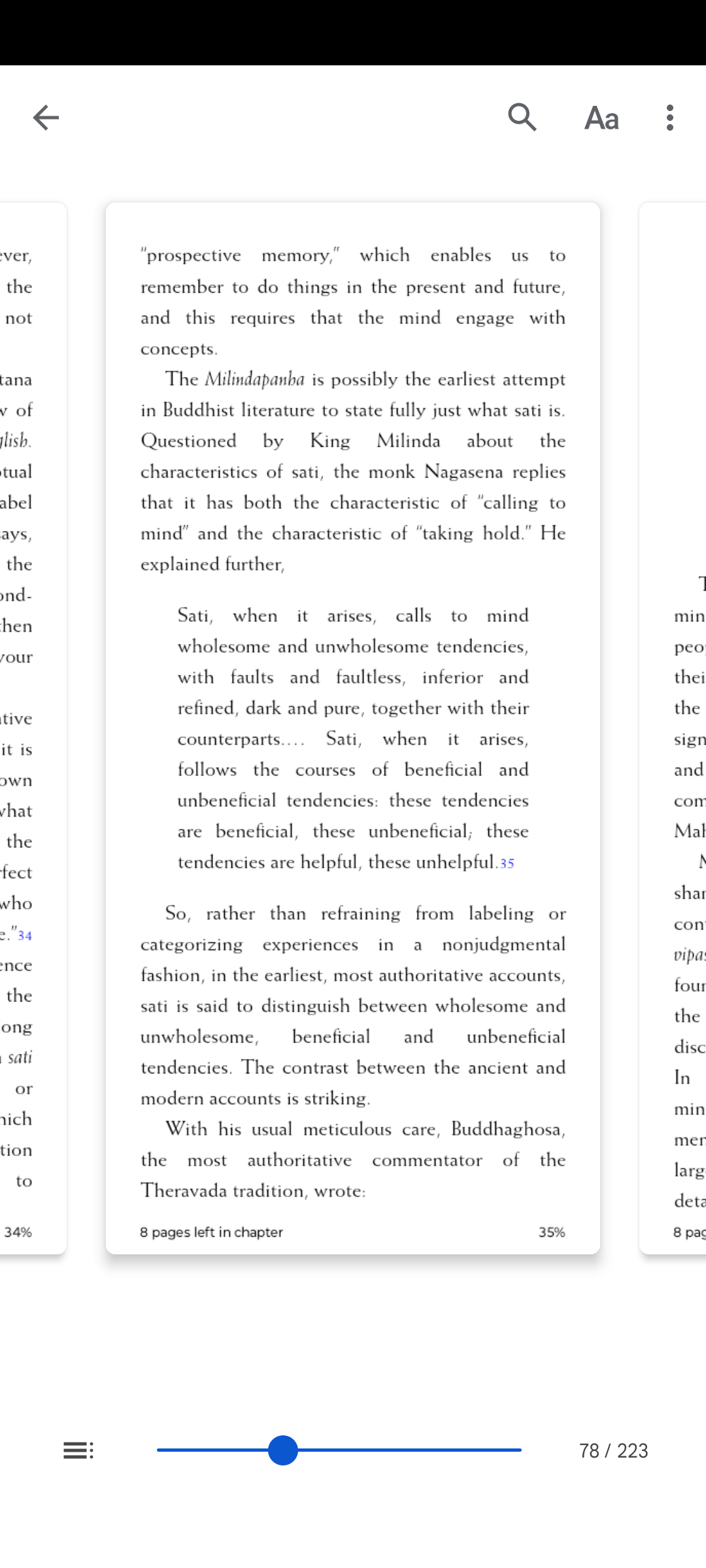 @Dan188 Wiadomo że obecnie na zachodzie sati jest rozumiana inaczej niż rozumiał to Budda. Współcześnie w Mindfulness movement rozumieją ją jako bare awareness -- nie oceniająca świadomość to co ty nazywasz niereaktywną świadomością. I jako tylko w chwili obecnej. Alan B. Wallace w książce "Attention Revolution" dokonuje ciekawego porównania więc wrzucam screeny z tej części książki.