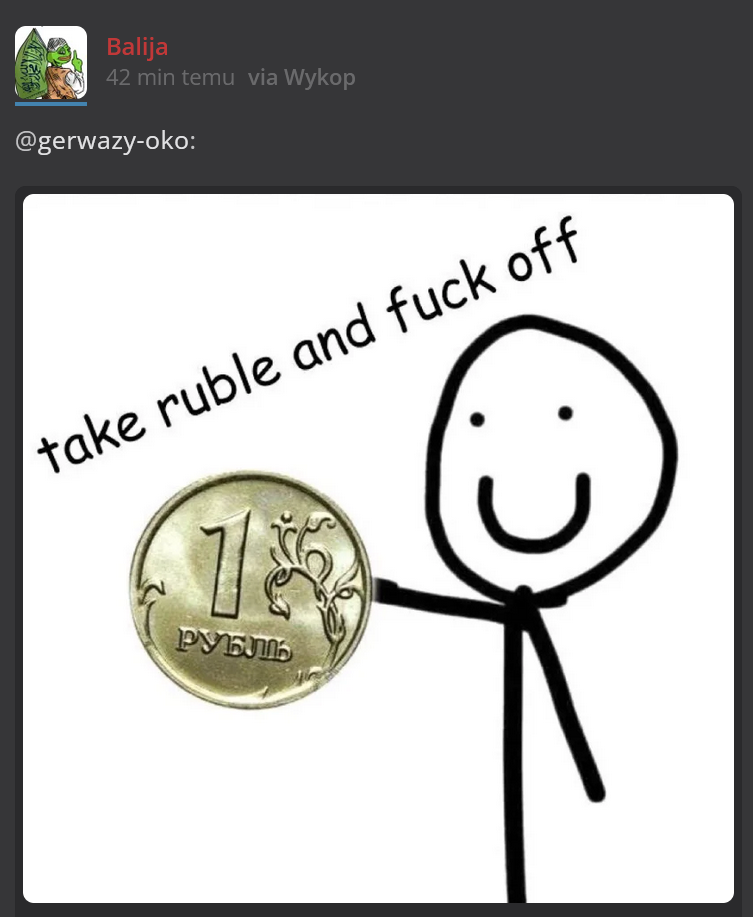 naprawde to co sie dzieje na tagu #ukraina to jedna wielka schizofrenia xD wrzucam sobie newsy zwiazane z roznymi sytuacjami kompletnie bezstronnie zeby informowac opinie publiczna i jak nawet news jakos nawet nie krytykuje specjalnie ukrainy to juz zlaza sie odklejency i pomawiaja mnie od ruskich trolli, onuc xD co sie stalo z tym portalem doooho***ya XDDDDDD #ukraina #gorzkiezale #wykop #to #