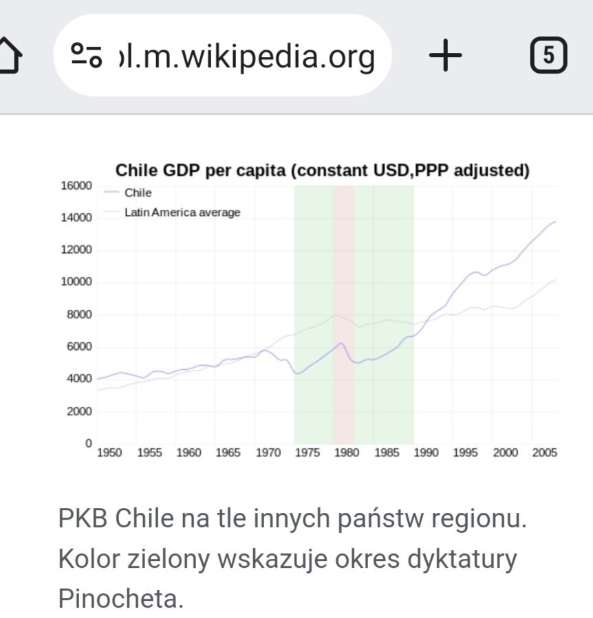 PobierzMasz naniesione manipulacje, sprzeczne z podpisem na oryginalnym wykresie i kompletnie nie pokrywające się z datami w rzeczywistości. To jest przecież dokładnie ten sam wykres, tylko usunięto z niego opis i "delikatnie" przesunięto daty na osi x, żeby pasowało pod tezę. Niestety manipulację można łatwo wykryć, porównując ten wykres do oryginału z wikipedii, który wstawiłem. Na tym twoim przejęcie władzy przez Pinocheta ma miejsce...na