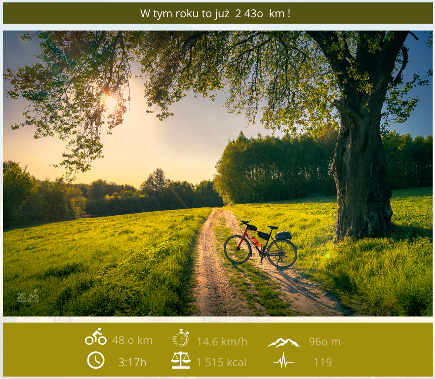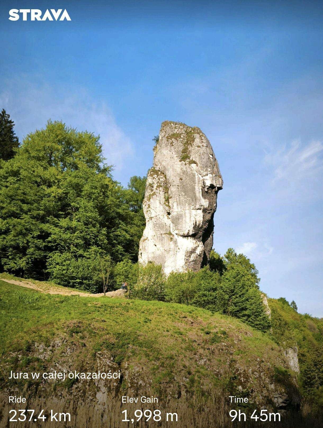 Zdecydowanie najładniejsza trasa jaką dotąd jechałem. Pobudka po 4 nad ranem, później pociąg z Brwinowa, przesiadka w Skierniewicach i kolejny pociąg do Radomska. Mimo, że nie udało mi się kupić biletu na rower, to było mnóstwo pustych haków i obsługa nie robiła problemów. Najpierw przejazd przez Kijów i wizyta w zdewastowanym parku miniatur sakralnych, by zobaczyć 14 metrową "miniaturę" wielkiego Polaka, który bardziej przypomina Mariusza