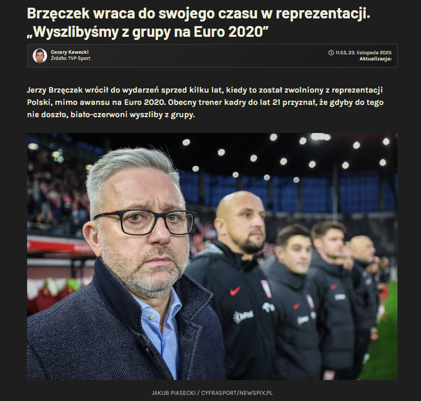 PobierzJestem przekonany, że gdyby nie wybuch pandemii, to bylibyśmy na mistrzostwach Europy. Mieliśmy wtedy 10 miesięcy kompletnej przerwy od spotkań z reprezentantami, trzeba było budować wszystko od początku. Wyszlibyśmy z grupy. Ale to byłoby dla mnie za mało. I tak to by nie było doceniane. Zwróćcie uwagę, że selekcjoner Paulo Sousa zdobył jeden punkt i wrócił, jakbyśmy zdobyli mistrzostwo Europy. Była narracja, że wspaniale graliśmy. Wyobraźcie sobie sytuację, że ja wracam z