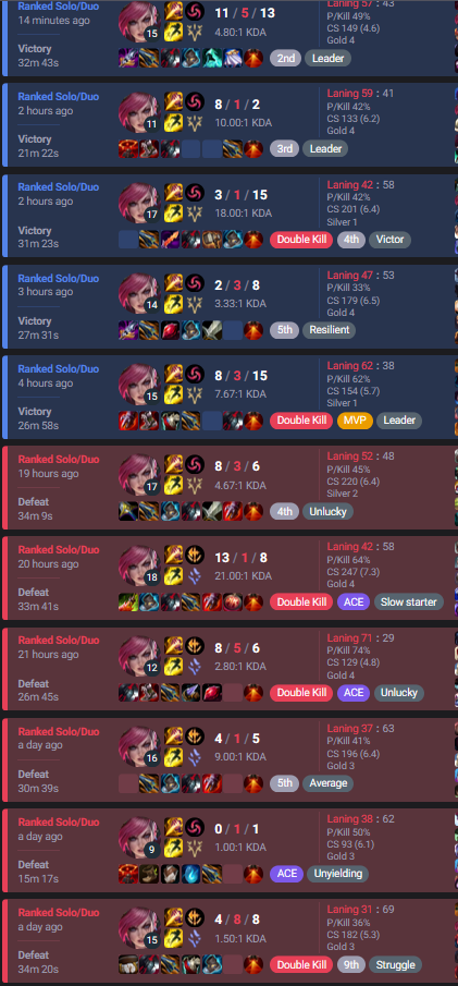 #leagueoflegends Lubie tą ligę legend. Najpierw 6 przegranych pod rząd, potem 5 wygranych i overall wrócilem do tego samego miejsca co byłem wcześniej xD