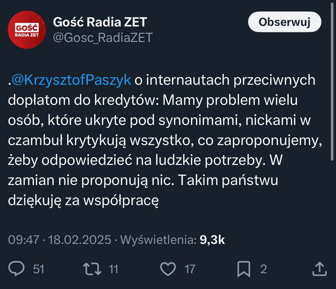 Szanowny Panie Ministrze Paszyk, rzecz jasna jesteśmy w pełni przeciwni JAKIMKOLWIEK dopłatom do kredytów, ponieważ te - jak udowadnia historia poprzez przypadek Bezpiecznego Kredytu 2% - jedynie windują