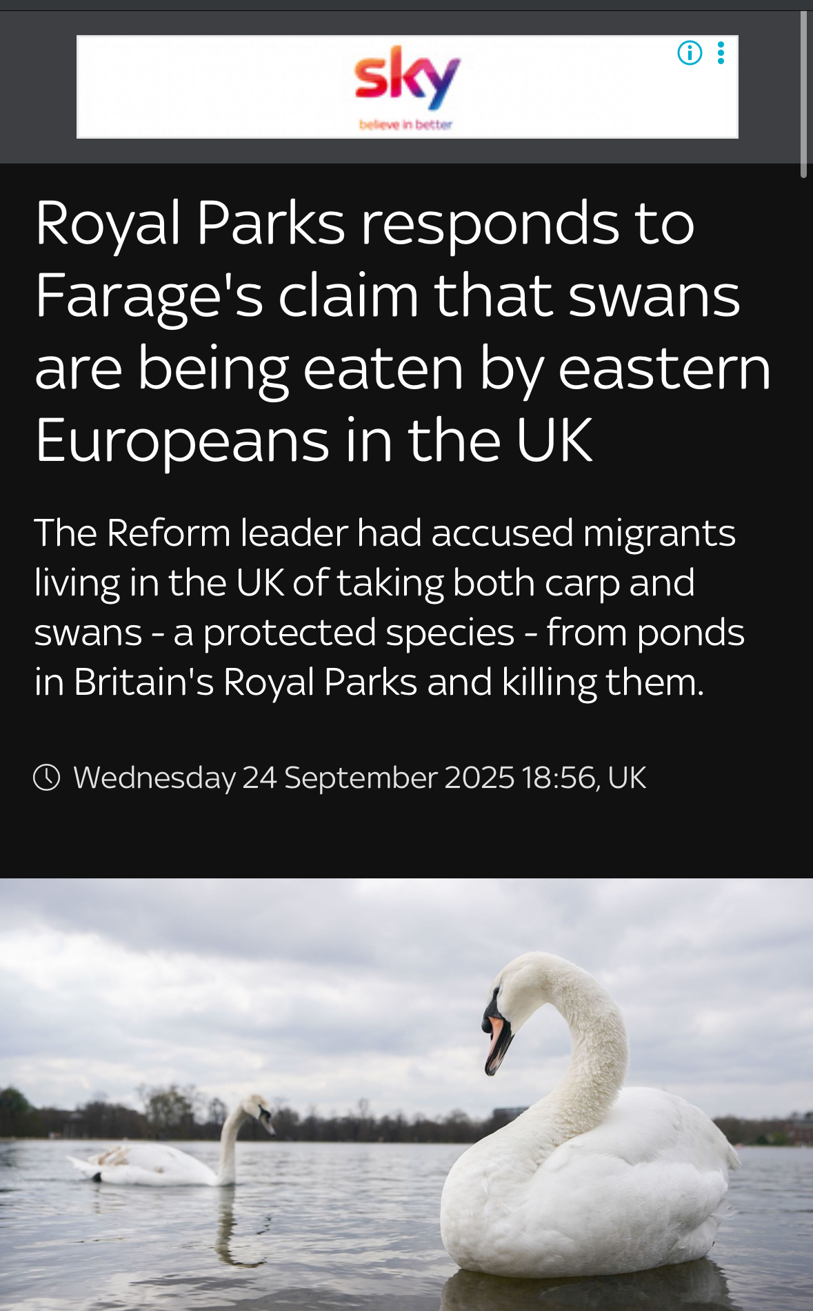 Tymczasem Nigel Farage w radiu opowiada że trzeba się nas pozbyć bo polujemy w parkach na labedzie i je później zjadamy.