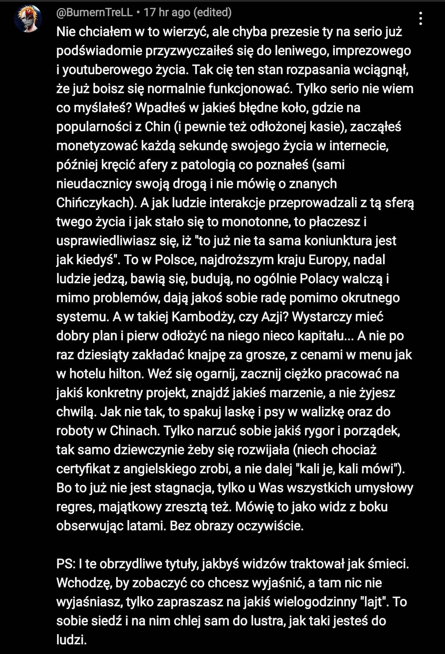 @Chilli_Heatwave: "Myli się pan" ¯\(ツ)/¯ Kanał Walenia jest martwy. Po serii subów metodą "na Cebe" u łysego już jest odcięcie i YouTube mu kasuje lewe subskrypcje. Do tego pięknie ma ucinane zasięgi.