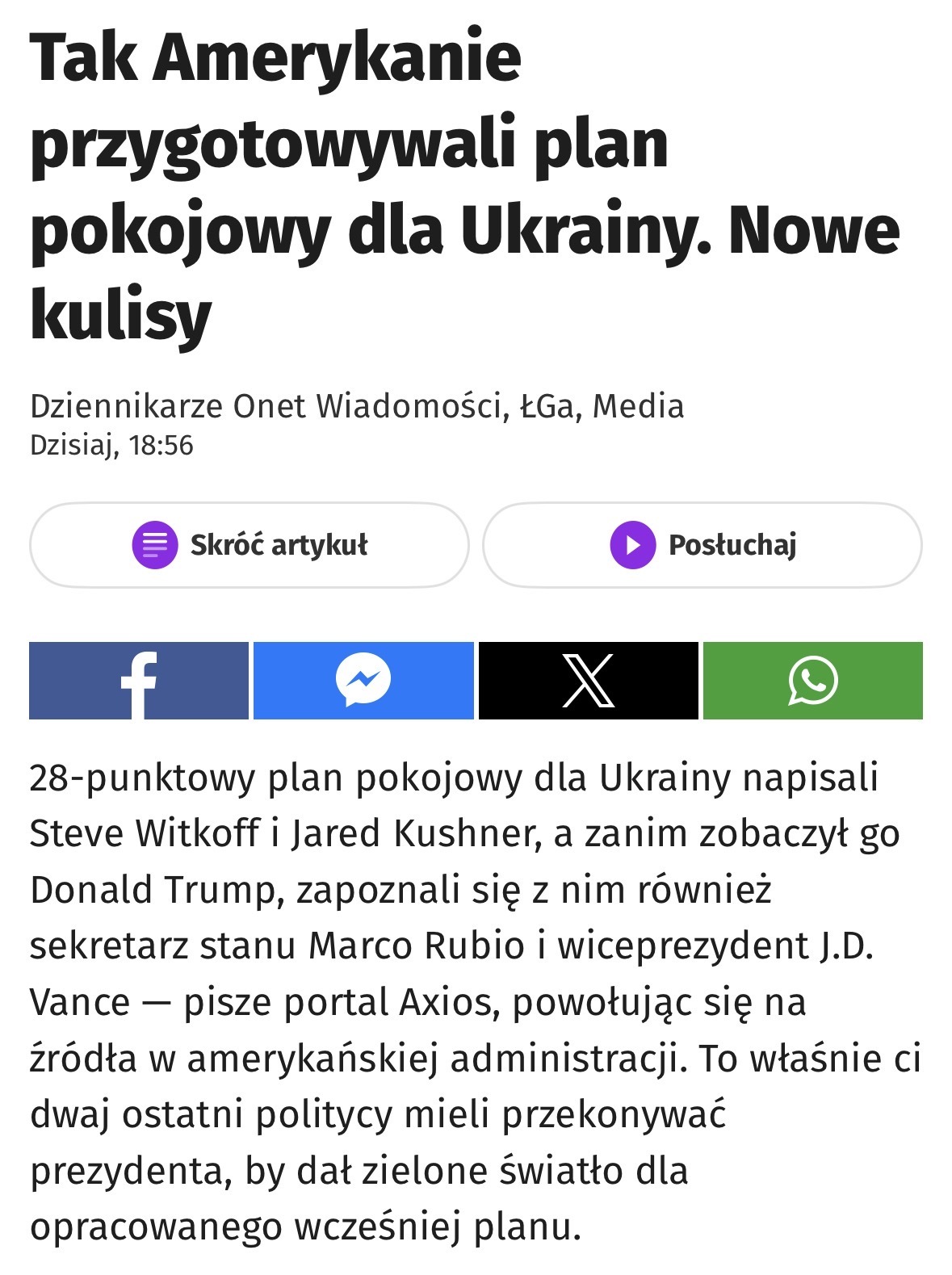 @Gours: porozumienie podobne do tego z minerałami, o którym nikt już nie pamiętam, ale przynajmniej ostudziło nastroje i pzowoliło dalej płynąć amerykańskiemu uzbrojeniu do Ukrainy. Szkoda tylko, że kolejny cyrk jest odstawiany podczas zmasowanych ataków rakietowych ruskich i giną niewinni ludzie. Nic się nie zmienia, wojna trwa nadal.