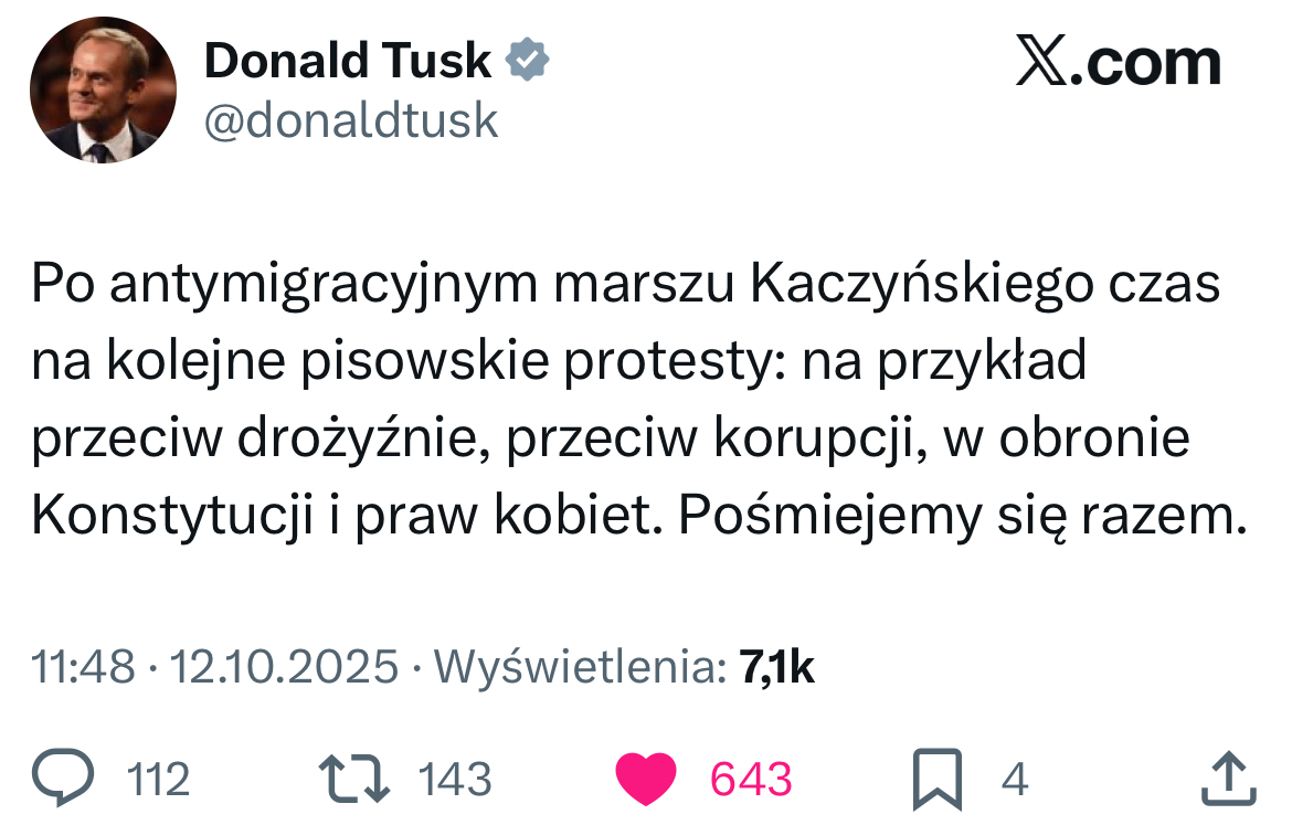 Ja do Tuska trochę zastrzeżeń mam, ale jednak on nadaje odpowiednie kierunki PO, a obawiam się, że jak odejdzie, to prym będą wiedli pod presją Razemitów, Lewicy i innych lewaków jakieś Sterczewskie, Szczerby ird. i jak będzie taki antyimigracyjny protest PiS, to zamiast przekierowywać na nich winę, to będą mówili o szczuciu na dobrych imigrantów. To są ich naturalne instynkty i to widać na każdym kroku…