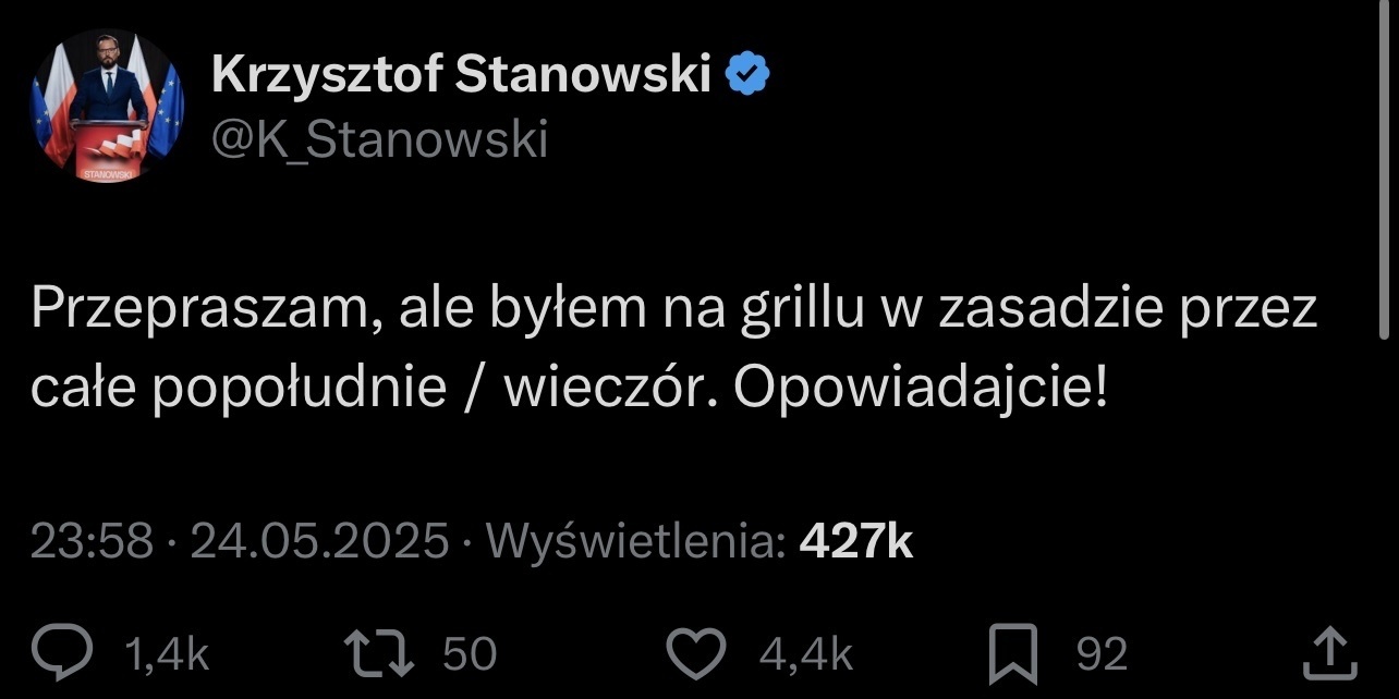 Standardowy Krzysio Pisowski. Jak trzeba do^ebać Trzaskowskiemu, to w kilka minut wrzucają z Mazurkiem filmik na yt, ale jak jeszcze nie przyszły wytyczne z Nowogrodzkiej jak zrobić damage control Nawrockiemu, to przypadkiem zawsze gdzieś był i cośtam nie mógł.