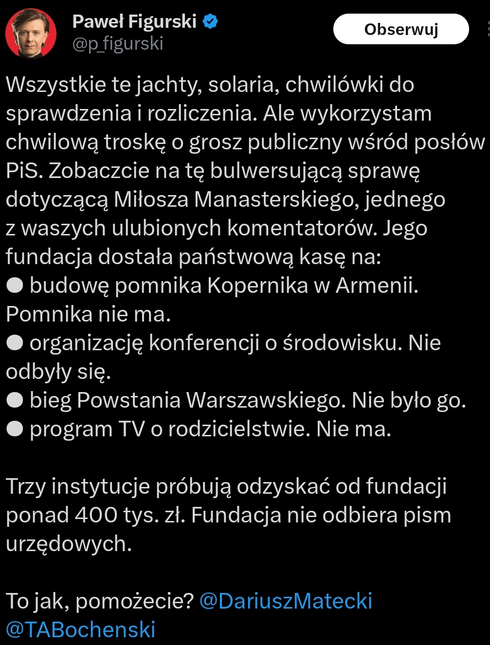Chciałbym wierzyć, że ta afera będzie gamechangerem i podejście Polaków do bogatych się zmieni, że wzrośnie świadomość klasowa i przedsiębiorcy stracą status bożków. Ale znając życie sprawa przycichnie i za miesiąc ludzie zarabiający minimalną dalej będą kłaść się rejtanem przed opodatkowaniem bogatych,