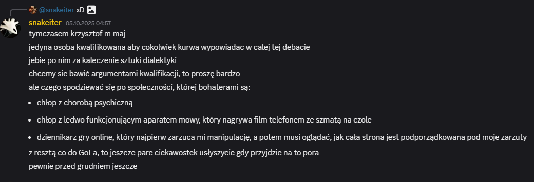 I ten sam typ ma jeszcze czelność używać nicku snakeiter. Gość który nie ma
