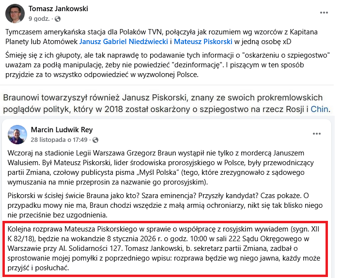 Jeden z naszych kamratów mało nie za###ał siostry dzisiaj (...) Ochu##ła na punkcie pięknego Trzaskowskiego (...) Koniec łagodności! Teraz jest, ku##a, wojna! Teraz, ku##a, wyciągamy długie noże