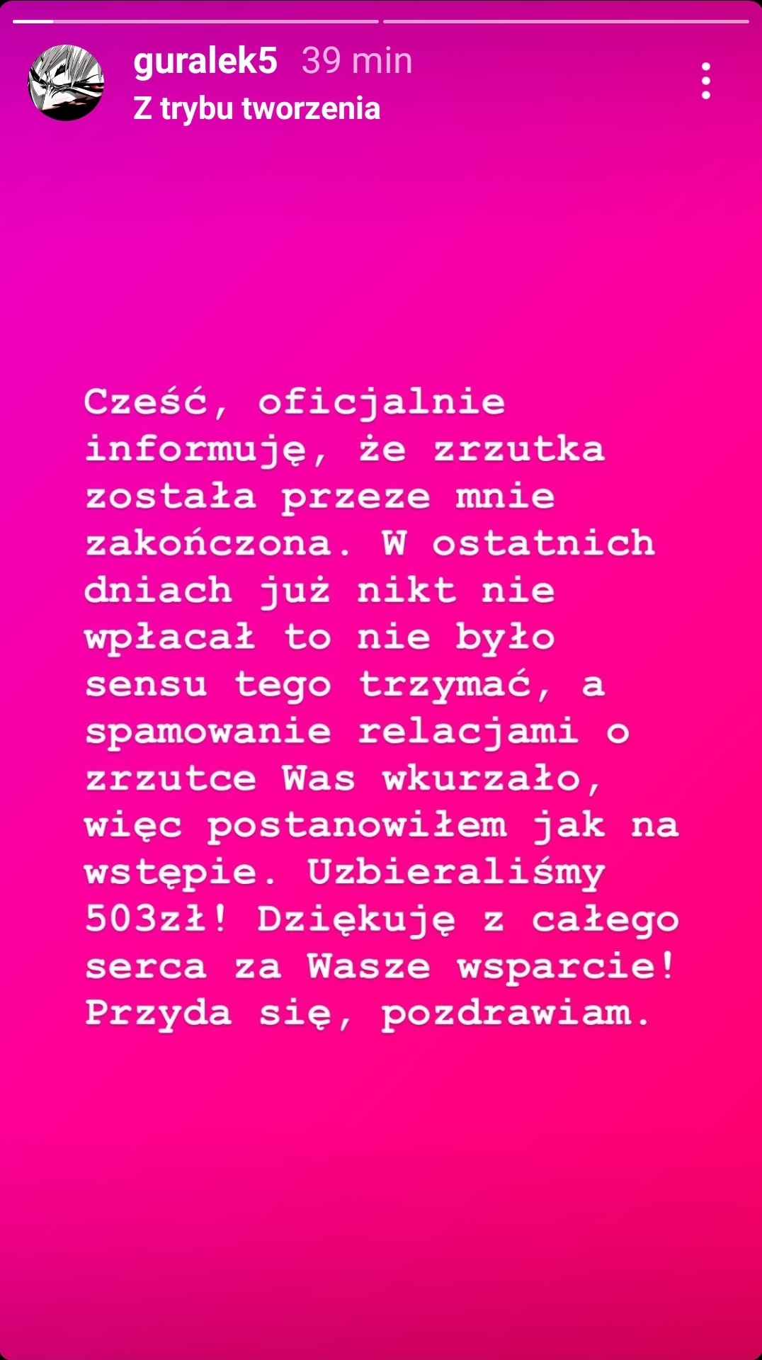 @Metyl_90: 503zł kończymy zbiórkę, wszyscy zmęczeni