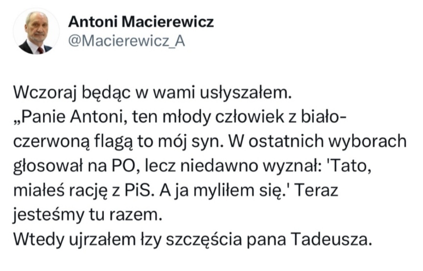 @wyssoki: to bardzo niepoprawne politycznie ale niestety tak to teraz wygląda... chciałbym żeby tak nie było ale dopóki nie zmieni się mentalność czyli kibicowanie partii politycznej tak jak kibicowanie klubowi piłkarskiemu (nieważne że nasi nic nie robią a nawet szkodzą ważne że ci drudzy dostali po dupie - patrz fascynacja Trumpem) to nie pójdziemy do przodu... Dajcie Polakom rządzić to się sami zniszczą...