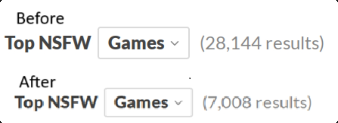 Późnym wieczorem Itch.io zablokowało wszystkie gry dla dorosłych na swojej stronie. Deweloperzy i gracze niezależni byli zszokowani, gdy zdali sobie sprawę, że nie mogą już uzyskać dostępu do gier na stronie. Kilka godzin później Itch wydał oficjalne oświadczenie, obwiniając operatorów płatności, ta