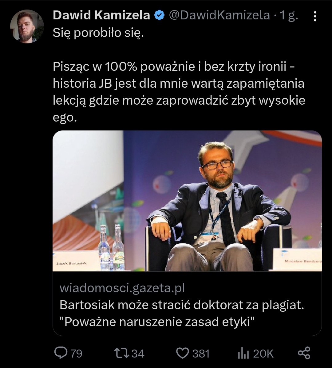 JendrekTL JendrekTL 21.09.2023, 17:49:18 via Wykop 2 + @Javert_012824: Nie interesuję się JB, ale co ma zbyt wysokie ego do plagiatu?