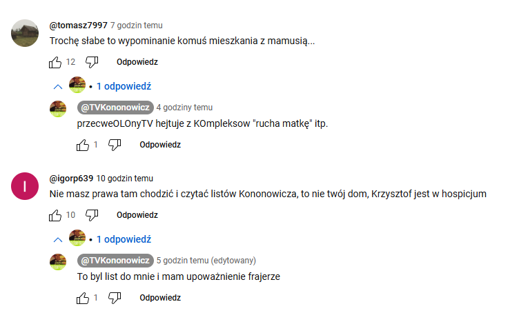 Ty Mariolka jak to kanał nie należy do Ciebie i to nie jest twoja sprawa i ty nie wiesz o co chodzi?? skoro to ty byłaś jedną z głównych mózgów tej operacji.. Przypomnieć ci jak kazałaś menelowi Jarosławowi.Z uderzyć Konona?? ty Zezolino będziesz miała jazdy niedługo jak reportaż będzie kręcony na miejscu i wywiady z mieszkańcami Krzyżowej i nawet weryfikacja waszego szacunku wśród społeczności katolickiej będzie przeprowadzona.. Nie pisz teraz do Dorotki