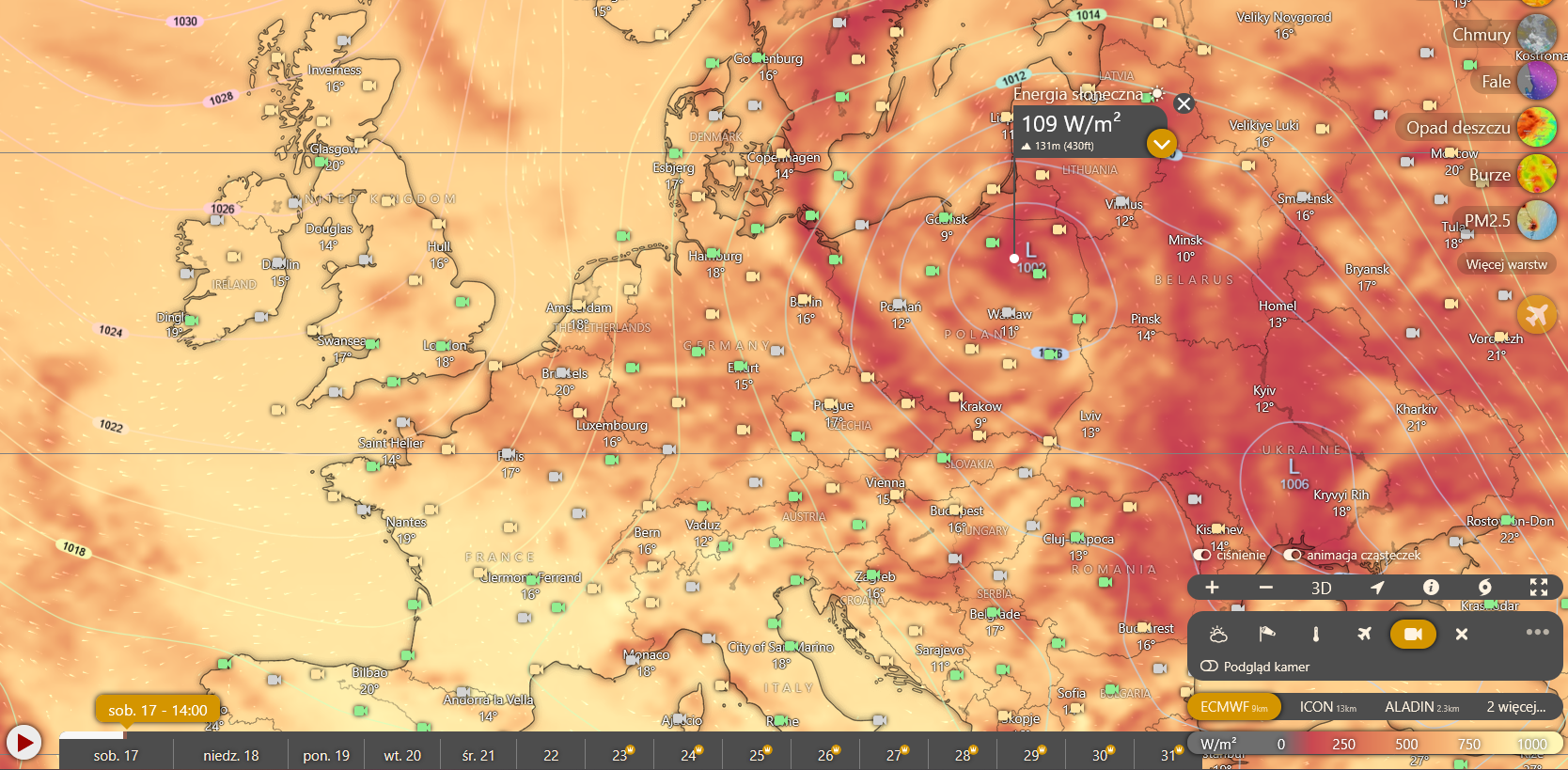 Kamaz0 - @pijmleko: Nasłonecznienie z Windy.com w czerwonych plamach jest od 100W do ...