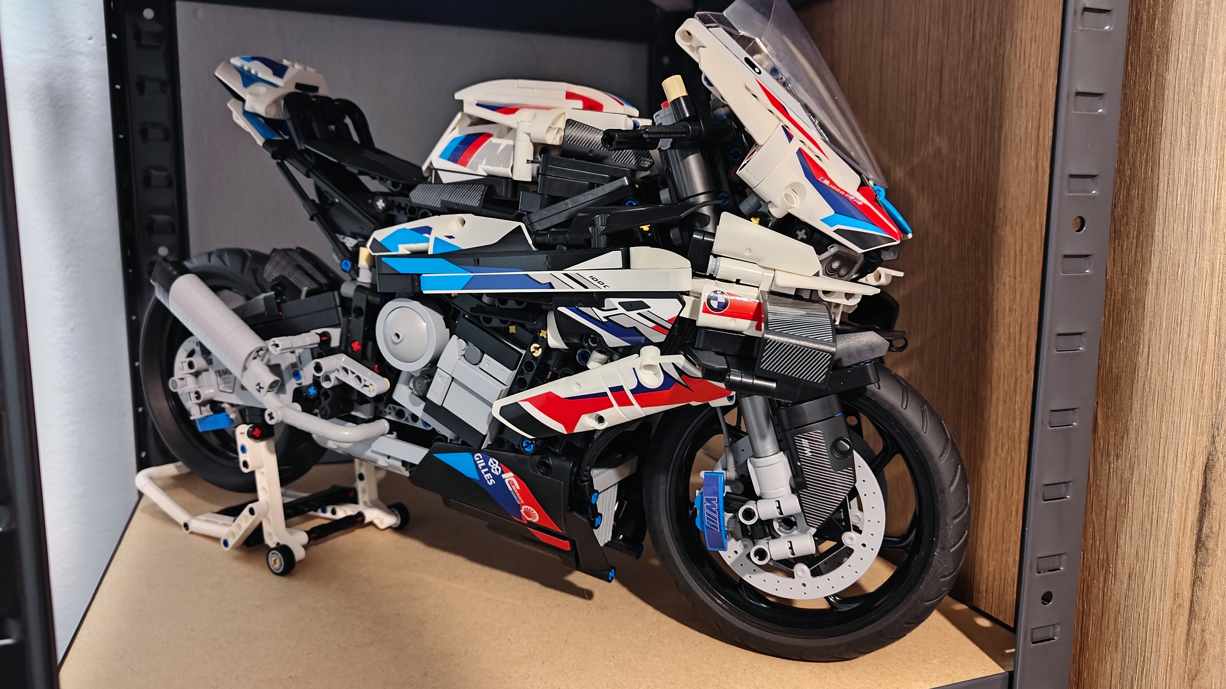 Wczoraj złożyłem ostatni worek z zestawu klocków BMW m1000r. Żadnego klocka nie brakowało, wszystko ładnie wchodziło - jedyne do czego mogę się doczepić to ta część z przodu od silnika (chyba dobrze napisałem nie jestem into motocykle) jest luzna bo trzyma się na tych krótkich klockach więc to skleje aby jakimś klejem. Wszystko gra i buczy, koła się kręcą, amorki działają, skręca, hamuje, tłoki się kręcą choć ich nie widać niestety xD